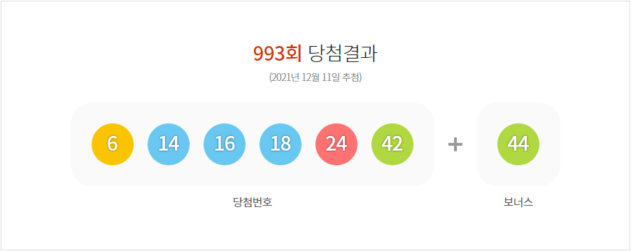로또6/45 993회 (2021년 12월 11일 추첨) 당첨결과